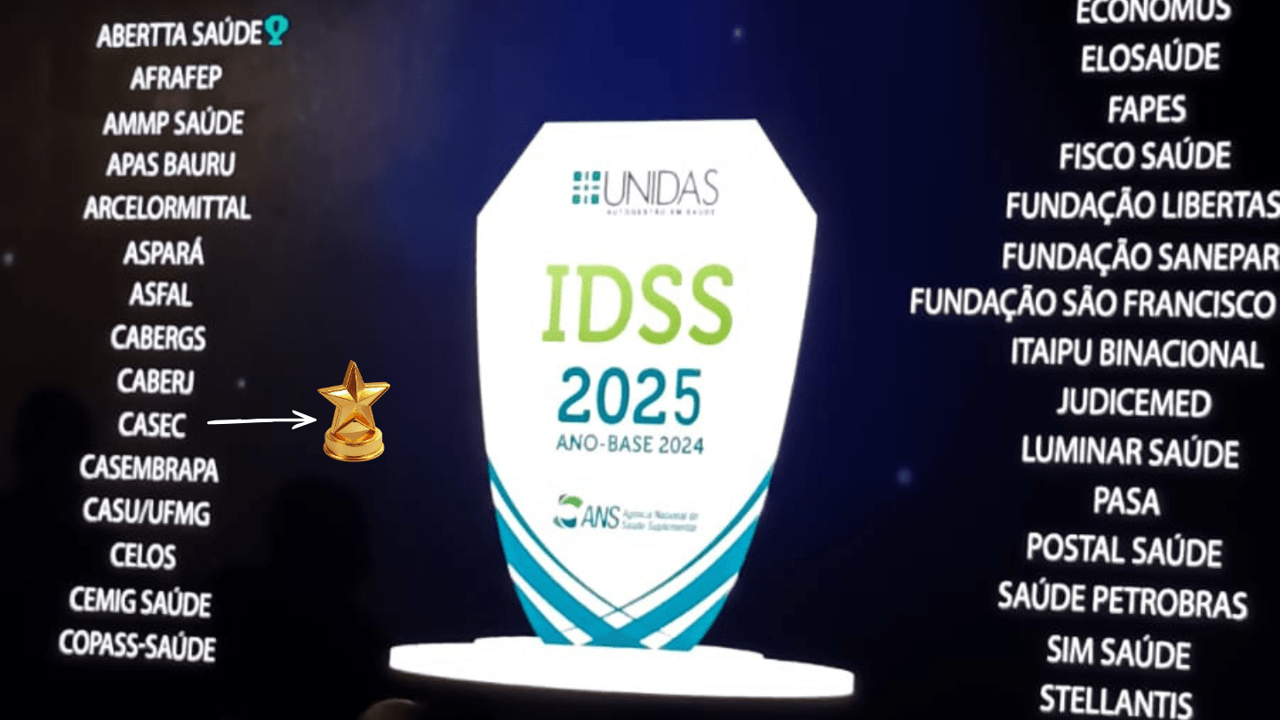 “Parabéns à toda a equipe da CASEC, beneficiárias/os, Patrocinadora, Representantes da CASEC nas SRs (Escritórios) e Conselheiras/os dos Conselhos Deliberativo e de Administração da CASEC, Salutis, Assessoria Jurídica! A conquista do IDSS (Índice de Desempenho da Saúde Suplementar) é graças ao esforço conjunto de todos!”